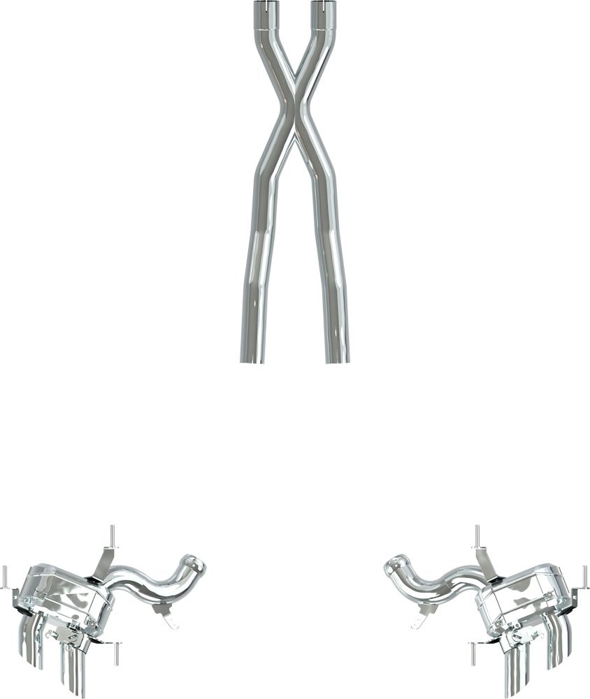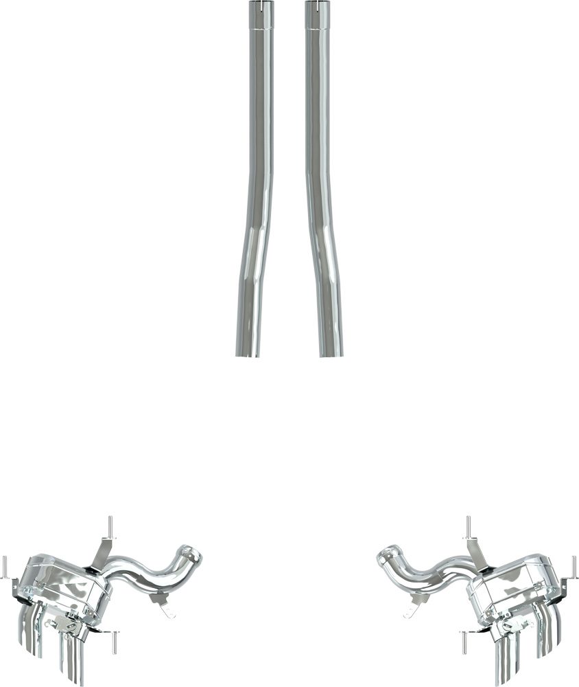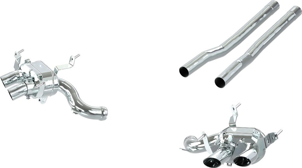 Całość wykonana z polerowanej stali nierdzewnej. Układ wykorzystuje seryjne końcówki wydechowe.