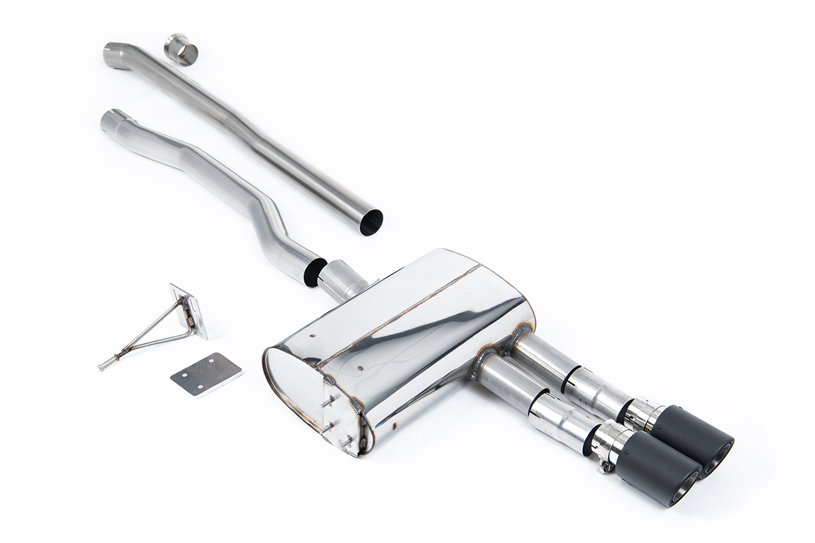 Milltek New Mini Mk3 (F55) Mini Cooper S 2.0 Turbo - 5 Door Hatch (UK and European models) - LCI with GPF/OPF Only (2019-2026) SSXM466 Cat-back GPF Bypass - Non-Resonated (Louder) with Carbon JET-90 Trims (Requires ECU Remap) 70mm 2,76"
